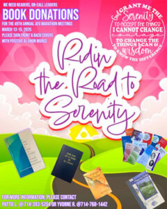 We give away books to the newest newcomer at every marathon meeting. Please consider donating a book or encourage your meeting to donate one. Click on the image below to download the flyer for more information.