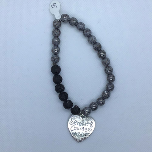 Lava Aromatherapy elasticized bracelet. Add a drop of essential oil and smooth onto lava beads. Diameter: 8”